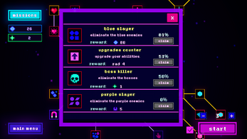 This is a fun and chill incremental game. The neon aesthetic works really well and the game feels polished. It feels like the skill tree is currently built so that you will just end up unlocking every node anyway rather than allowing someone to focus on a particular build they may have in mind. You could see from my playthrough that I just wanted to focus on increasing my damage but eventually had to pick other upgrades in order to progress. That may be the experience you are going for but perhaps is something to consider as you continue to build the game. I enjoyed my time with it and wish you the best with the full release!