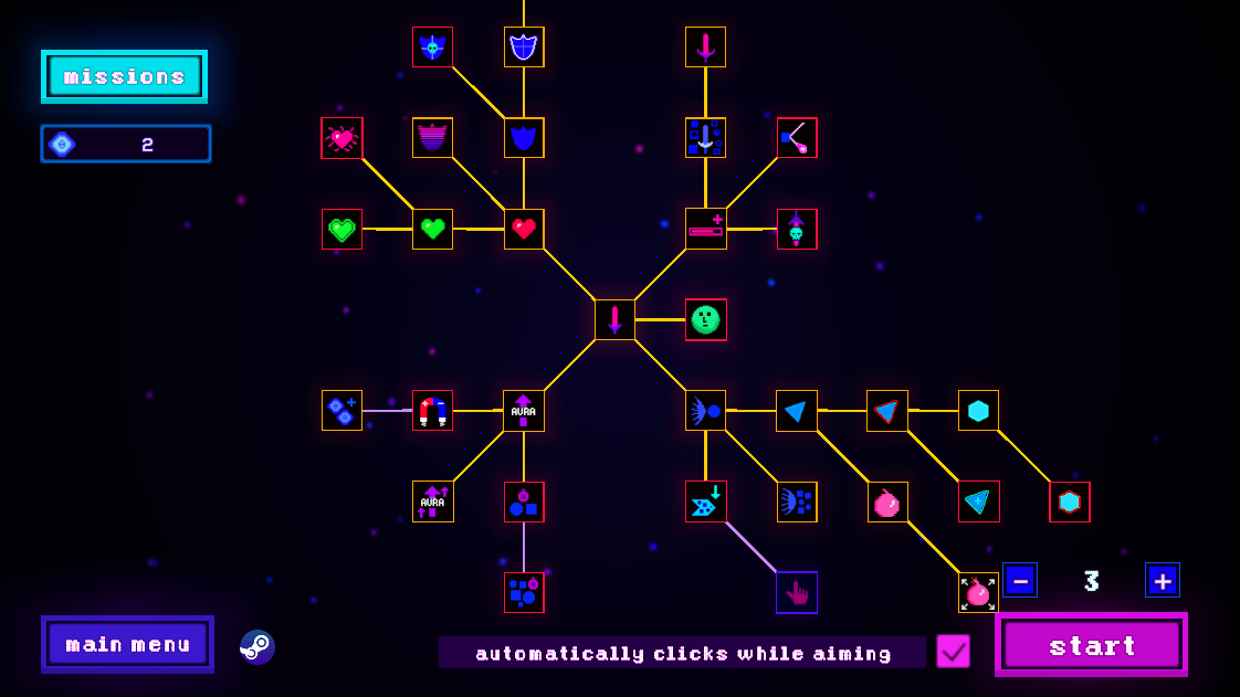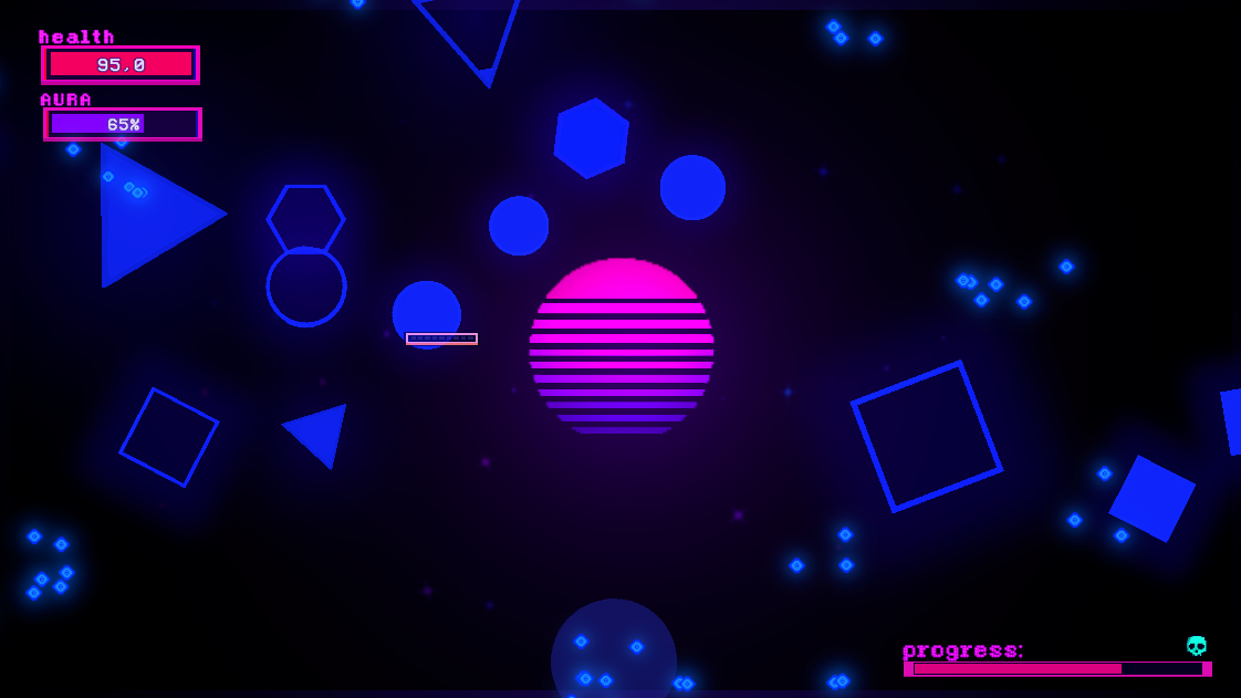 I do have some small feedback. It was initially for me not that clear that you needed to collect the orbs that enemies drop, making my first few runs a little confusing. Also I do not understand some parts of the mechanics: why your health decreases even when you shoot and what the Aura upgrade does. I feel like all these things could be solved with either a tutorial or little more information in the description.